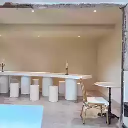 The decoration is Minnie, Minnie, heart, spacious, clean, white, easy on the eyes, suitable for sitting and relaxing. There are seats both inside and outside near the swimming pool.