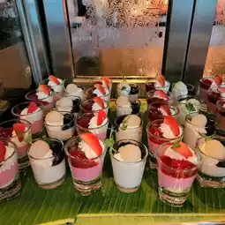 🍰 Dessert corner: It's called a lot, both Thai desserts, various cakes, shaved ice with Thai toppings, ice cream and fruits. You have to save your stomach to eat.