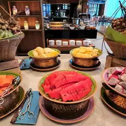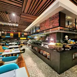 With the hotel's main restaurant, presented in the form of a live cooking buffet with a variety of food stations and a Lunch Buffet, both International and Asian food, such as