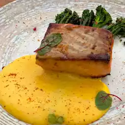 The menu features European and Japanese dishes, created by Chef Olivier da Costa.