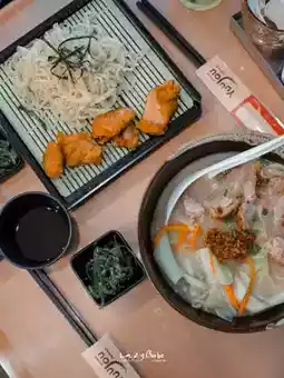It's a small, tiny restaurant right next to the BTS, so it's super convenient. The tables are a bit compact. 🪑 The price is super cute, so worth it. The taste isn't bad at all, it's okay. The karaage chicken is delicious, filling, and gives you the energy to keep going. ✨