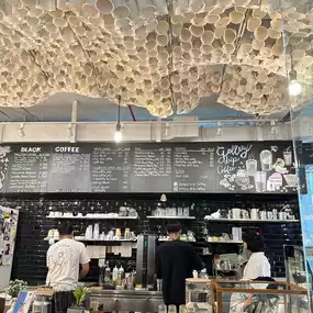 Everyone who comes to the art gallery must come and try this coffee shop. The shop has won many awards because it is drip coffee, not instant coffee. The shop is on the first floor of the art gallery, so there are a lot of people waiting in line. There are also a lot of tourists. The shop looks cute, decorated in black and wood tones. There are quite a few seats. The menu is at the bar, with many categories, from coffee, tea, strong, weak, and bakery. While waiting to order, you will see the staff dripping fresh coffee right there. You can sit in front of the bar and watch it happily.
