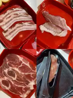 Ribeye, pork, chicken, full of seafood, meatballs.