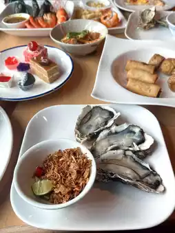 You can enter the Baiyoke Sky Restaurant to have your seafood special buffet dinner. You'll have a choice of over 50 menus. The Baiyoke Sky Hotel Offers a Buffet Lunch and Dinner Buffet with different price and of course different maincourse.