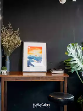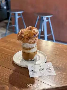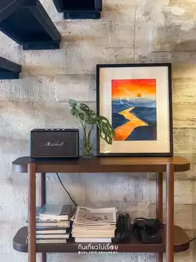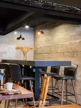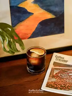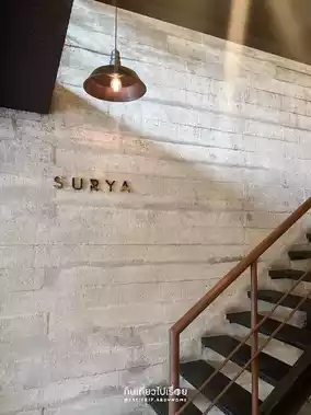 Surya Coffee, a coffee shop in front of Sammakorn Village. Anyone who drives or walks past will definitely not be able to resist and stop by for a cup of coffee. The mood of the shop emphasizes dim lighting, slightly orange lights, and the smell of coffee, making it another kind of relaxation.
