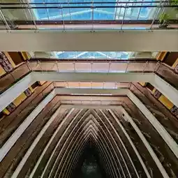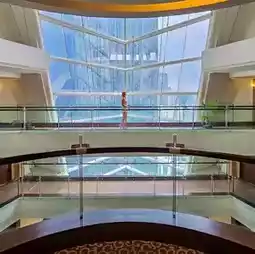The interior of the hotel is designed in the shape of a ship's bow, making us feel like we are relaxing on a multi-story ship, making it a highlight. When anyone comes here, they will definitely have a picture to take back.