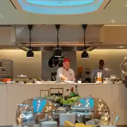 Starting with the lobby, it is decorated in a modern style, looking beautiful and colorful. Next is The Eatery restaurant, serving All Day Dining as the main restaurant, serving Thai and international food, from breakfast to dinner. There are many menus to choose from.