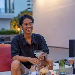@amBar is a bar on the rooftop of the hotel, on the same floor as the swimming pool. Here, it serves food and drinks, sit back, relax, or socialize, and enjoy the city atmosphere. Enjoy to the max 🌟