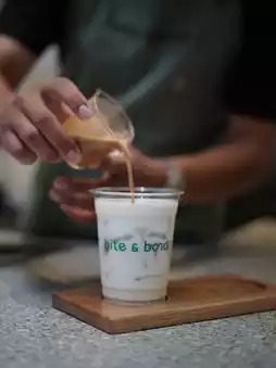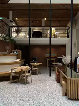A beautifully designed cafe with a unique identity in Phra Nakhon area, located inside the Double B Hostel Hotel. Decorated in earth tones, light brown wood, and arranged with a high ceiling, making the interior of the shop quite airy and warm.