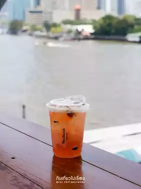 #Rainy season destination ☕️Woodbrook, a riverside cafe on the 3rd floor of an old building in the Song Wat area. From the entrance of Hostel URBY, follow the signs and go up the stairs until you find the shop, which has both an air-conditioned area and an outdoor area with a Chao Phraya River atmosphere. Watching the boats go by is another kind of fun.