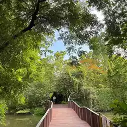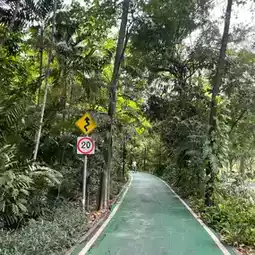 Let's go cycling at Suan Rot Fai. The bicycle rental fee is only 30 baht. You can ride all day. It's so much fun. It's another activity that we think allows us to rest our eyes from the phone screen and see the view, feel the natural breeze, and breathe in the fresh air. Even though we're in Bangkok, we still have a place to rest our minds. There's a bicycle lane inside for us to cycle. You can cycle along the bicycle lane. I recommend going in the evening so that it's not too hot. If you can't think of anything to do in Bangkok, try going there. #Public park worth visiting #Suan Rot Fai