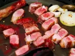 such as Wed-aged pork belly, pork neck marinated in Shindoseki sauce