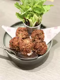 #Fried larb 220.- I always order this dish. I like this restaurant's fried larb the most. They give a lot of vegetables.