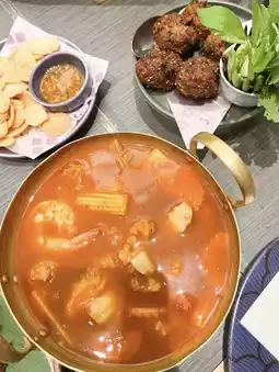 #Sour curry 350.- Actually, there should be fried cha-om as well, but it was all gone. Only vegetables were left. I was a little disappointed. I wanted my friends to try it, but overall, it was delicious.