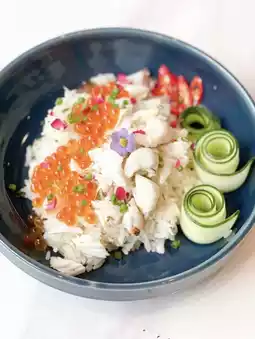 #Spicy rice salad with crab and herbs and salmon roe. If you like salmon roe, you must order this dish because it is full of fish roe. I personally think that children will like it.