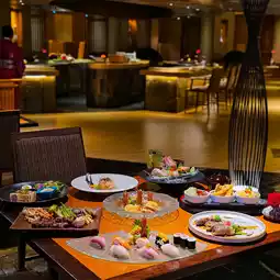 🍽️ Let's take a look at the delicious corner here, with lunch. With the Chinese restaurant "Liu", you can choose to eat both buffet and A la carte. There are 32 types of dim sum to choose from with premium ingredients. The dim sum is firm and big. For dinner, we will bring you to Kisara restaurant. Authentic Japanese food, fresh ingredients, very premium, created by a real Japanese chef. Served on beautiful plates.