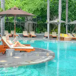 💥 The facilities here are complete and there is a large swimming pool surrounded by trees, very shady. In addition, there is also a fitness center, spa and City Terrace bar for ordering cool drinks to sip by the pool, it's super cool.