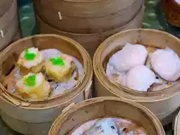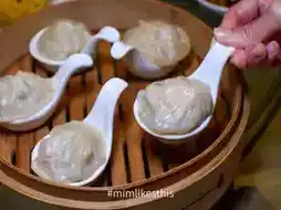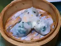 - Shrimp dumplings with shrimp paste sauce Shrimp lovers must not miss this dish. You get a whole shrimp on top, with minced shrimp inside. The sauce is fragrant with a little shrimp paste. It goes well together.