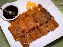- Peking duck, crispy duck with thin skin, eaten with hot spring rolls, vegetables, and sauce. It's very delicious. For the duck meat, Mim chose fried duck with fish sauce. The duck meat is not dry. You can eat it and chew it happily.