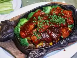- Black pepper pork Served on a hot pan, the black pepper sauce coats the soft pork. Eating it with hot rice is so awesome.