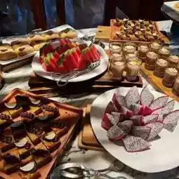 Evening mocktail from 17.00-19.00 on the day I went, it was also a buffet. There were 4 mocktail drinks to choose from, fruit juice, soft drinks because ALC was not served. As for food and desserts, there was a certain level. Hot food came out at 18.00 on the day I went, there was pork satay and French fries.