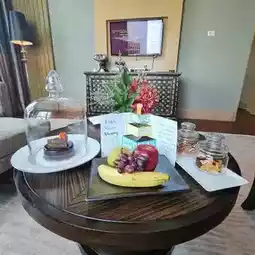 Room: Prestige Suite room number ending with xx08 is large. There is a living room and bedroom area. There is a work desk in the living room. There is a large sofa to lie down and watch TV. Bose sound system can be connected to mobile phones or Notebooks to watch series comfortably. Good sound. There is a full Mini bar as a complimentary because the club does not serve ALC and there is an illy coffee machine.