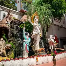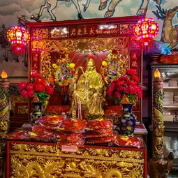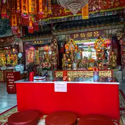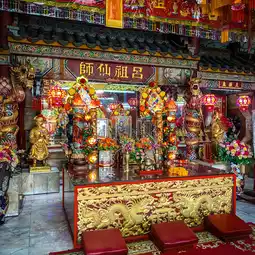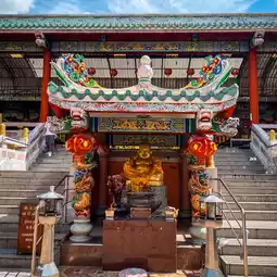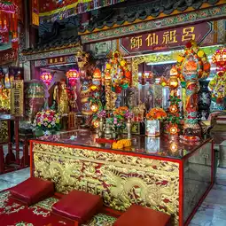 Today, we're taking you to worship for those of you who are single...who should you turn to for a relationship? Let me recommend a spiritual refuge...at the Lee Tee Miao Na Ja Shrine. Take the MRT to Wat Pratu Mangkon, which is located near Yaowarat. It's not crowded on weekdays. Not sure where to start? First, pay your respects at the lower shrine. Once you're up at the shrine, an elderly couple will guide you through the worship process and what to offer. Don't worry, they offer a set of offerings for 200 baht. You'll even get a certificate of merit!