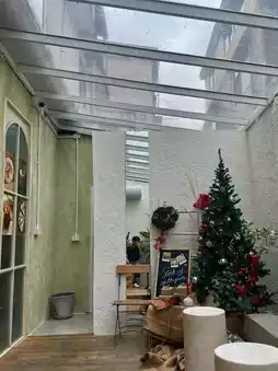 Cute cafe, beautiful mood, minimalist style. It is a cute cafe in an alley next to BTS Ratchathewi station. You don't have to walk very far. Plus, before you reach the cafe, there is a beautiful photo corner with the shop sign. And I like one thing. Along the way, there is something like a dance school. There is a sentence on the wall. It is cute. I like it very much.
