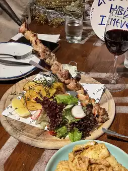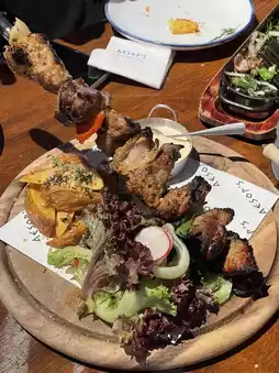 ❤️🔥 Chicken souvlaki (450.-) and Pork kontosouvli (950.-) are also very good. They make every piece of meat soft. So soft that it's confusing. The taste is good. But what I love is the potato wedges that come with it. It's great!! I'd like to recommend these 3 menus. The rest of the taste is very good, but eating a lot of it makes it a bit too rich. 🫣