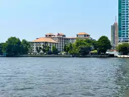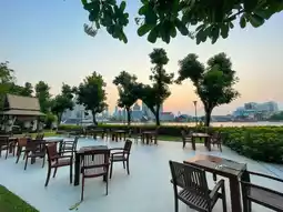 This restaurant offers a beautiful atmosphere on the banks of the Chao Phraya River, offering a view of the flowing water and the boats passing by, all while enjoying a relaxing meal.