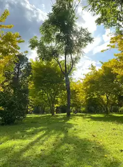 This part is fresh, lush green and beautiful yellow leaves. It is great for exercising or taking pictures. It is very shady.