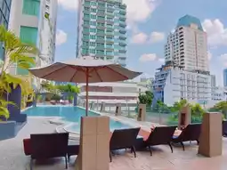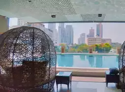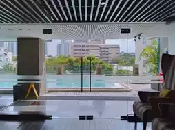 The hotel is located deep in Sukhuiumvit 20 Alley. It takes about 15 minutes to walk there from BTS Asoke Station. It is recommended to make use of the hotel's free shuttle bus (until 12 midnight). Next to the hotel lobby is Opio Bar and Lounge, which has a projection screen. It should be quite lively on nights when there are football games. There is an infinity pool outside the lobby with natural light, which is perfect for checking in.