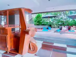 The hotel also has a gym, and there are various sofas and lounge chairs around the swimming pool. It is quite refreshing to lie by the pool and listen to the sound of the water. The wooden tuk-tuk is a small poolside bar, so cute and perfect for taking photos and checking in.