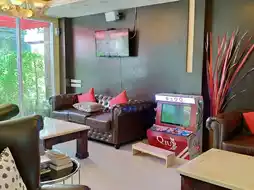 The hotel lobby is small and cozy, but it has nostalgic arcade games for guests to play for free. You can actually play games like Devouring the World and Street Fighter for half a day.