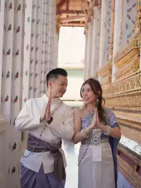 Provide one-stop: makeup/set hair/Thai costume/photographer 1 hour📸 And I also chose the earliest time at 9:00 (want to avoid the crowd) After the transformation is completed, it takes about 3 minutes to walk to the Flower King Temple.