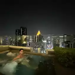 Before going to bed, I stopped by the highlight of this place, which is Belga Rooftop Bar & Brasserie, located on the 32nd floor of the hotel. Let me tell you that the view is amazing. The atmosphere in the evening is great. The food and drinks here are very delicious. All the staff are lovely. I recommend booking before coming to get a seat with a good view.