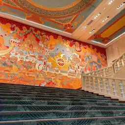 The symbol of the Anantara Siam Hotel that everyone who comes must take a photo to check in is the wall painting on the stairs. Beautiful and dazzling