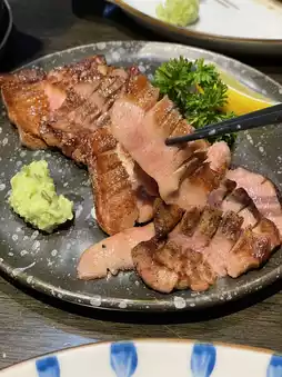 Another thing I like is the grilled beef tongue (290฿). The tongue is very soft. Squeeze some lemon, sprinkle some salt, and eat it with pickled wasabi. 🤤