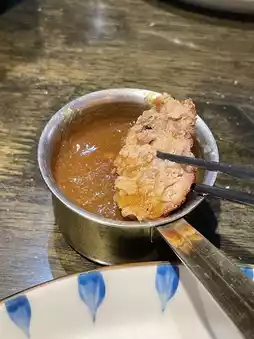 ✨ But what I'm impressed with is the restaurant's Japanese rice. They cook the rice on a stove at the table. The rice is very soft. It's even better when eaten with a raw egg yolk! ☺️