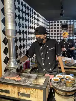 They sell it as a set. You get a 200g hamburger (390฿/set) with salad, rice and soup. The grilled beef smells good but it's a bit overcooked for me. The sauce is delicious. Overall, the taste is okay.