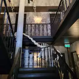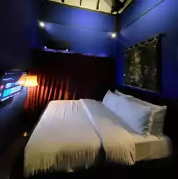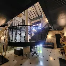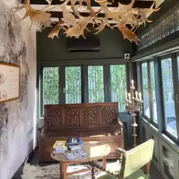 #Bangkok Hotel Baan Tuek Din Hotel, Dinso Road is a renovated old house from the reign of King Rama V of the Saengchuto family. The lobby is on the coffee shop side. After that, you have to walk through to the back of the guest room. You have to use a key card to tap the door to enter. I like the privacy here. When you enter, you will see animal skeletons, animal skins, leather furniture and various decorative items that are collected on the central staircase. The room I booked, 204, is a duplex room. The ground floor is the living room area with a long sofa, animal skin rug, TV, mini bar and bathroom. There is a spiral staircase to the 2nd floor, which is the bedroom area. The bedroom area has very little light, perfect for sleeping. The bed is very soft, sleep comfortably. Upstairs, there is a bathroom. There is a suitcase. I recommend going up the central staircase and entering the door on the 2nd floor, which is more convenient. The 2nd floor has a library in front. You can come in and relax. It is much more convenient than in the room. In front of the hotel is a Turkish coffee cafe, restaurant, cocktail bar. There is no parking here. You have to park in the private parking lot next to the hotel. Staying here will be in an area with many famous restaurants. Not far from the Blue Line BTS And there are tourist attractions such as important temples in Bangkok, Brahmin temples, and various museums.