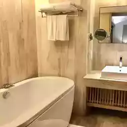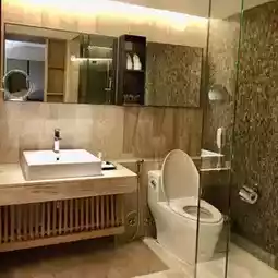 Arcadia Suites Bangkok is about 10 minutes away from BTS Phloen Chit station. However, the hotel provides tuk tuk to take guests between BTS and the hotel. If you don't want to walk, you can use this service. I booked a one bedroom suite, which has a living room, bedroom, and kitchen. The room is quite large, with three beds and enough space to move around. The bathroom is also very large, with a bathtub and a shower. I just feel that this hotel may be a bit old and the maintenance is not in place, so the facilities in the room seem a bit old. I believe that after staying here once, I will not stay here again.