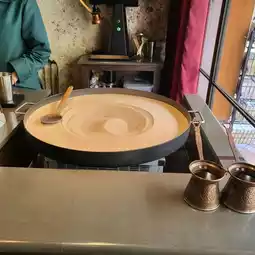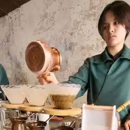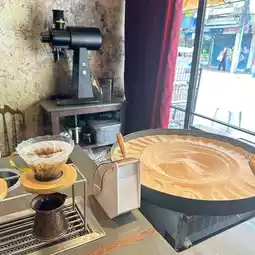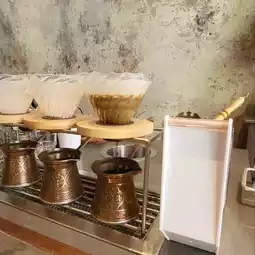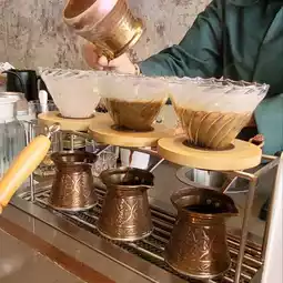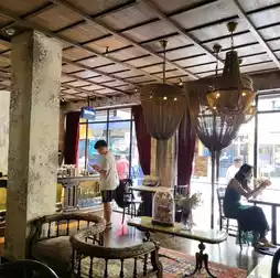 #Review Cafe Shaloba Boutique Coffee, a cafe with a signature menu, which is Turkish coffee mixed with tea. The brew method will use fine sand that is specially used for making Turkish coffee. How to brew, we have fun. But when the coffee boils, it was not poured into the glass for us at all. Coffee was brought through coffee filter paper. First, this one makes when sipping coffee without losing the feeling of being stuck in coffee like eating Turkish coffee elsewhere. Coffee has a fragrant tea scent that makes us have another strange taste. As for the porridge cakes, they are sweet and the right piece. The shop is decorated very beautifully, with 2 seating zones, which are the cafe zone and the bar zone that will open for sale. drinking at night This is considered another very beautiful cafe.