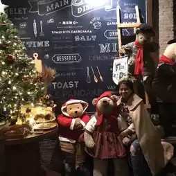 A cute cafe near Thonglor Soi 5 Teddy Castle, a bear castle. When you enter, you will receive a 100 baht entrance fee coupon that can be exchanged for drinks. There are hats, capes, and equipment for taking photos. Inside the shop, there are snacks, drinks, and the shop will always arrange corners to match the festival. But there will be a bear to welcome you. Children will probably love the teddy bears that fill the shop.