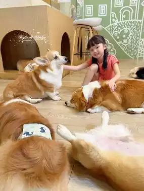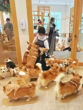 Although it's called a cafe, there are not many seats where you can sit and drink, everyone just sits in the reception area to drink, and the animal area inside is larger. Once inside there were over 10 corgis, all cute and both kids loved.