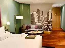 The check-in process was quick and the front desk staff also provided a welcome drink and ice towels. Even the design of the room card was very stylish with a photo. The background was actually the old look of Sukhumvit Soi 55, which was very thoughtful. We stayed in the smallest room type, Studio, which is about 37 square meters. The room is spacious yet luxurious with a simple design. The texture of the furniture is genuine, all made of high-quality materials.