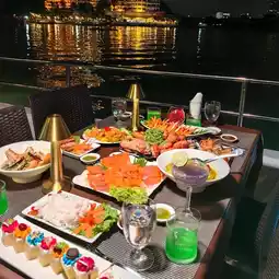 ✨🥘 The highlight is the all-you-can-eat buffet food on the boat with Welcome Drink, water, tea, and coffee.
