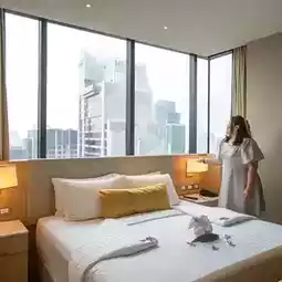 For those who are looking for convenient, stylish accommodation, city view rooms, comfortable beds, well-proportioned rooms, complete amenities, a bathtub for soaking, and 24-hour room service.