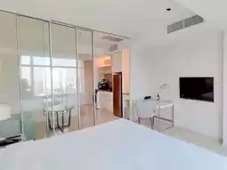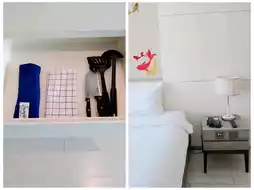 When you enter the room, on the left hand side there is a washing machine, double-door refrigerator, microwave oven, range hood, double-burner induction cooker, as well as dishes. There are knives, spatulas and other tools in the cabinet, so you can cook in the room. The room is divided into a bedroom and a small living room with a sofa by a glass door. We stayed in the cheapest room type, Double Deluxe, which is decorated in a simple style. Although there are no floor-to-ceiling windows, there is still a large window with a view of the city. Alcohol disinfectant hand sanitizer is also provided in the room, which is very thoughtful. The room is approximately 33 square meters in size, with plenty of space and the suitcases can be opened at will. The price including tax is only about HK$500 per night, which is very cost-effective!