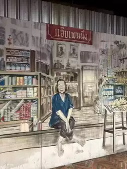 🎨 For those who love paintings and street art, Gammy recommends you to come for a walk. Each painting reflects the way of life of the people in this community since the past, in terms of trading, careers, and lifestyles. If you come during the day, it will be beautiful but hot. I recommend coming at night. On Fridays, Saturdays, and Sundays, there will be a walking street selling food. There will also be a band performing.